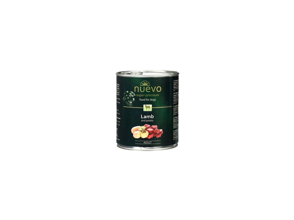 Nuevo pes adult Jehněčí - Classic konzerva je speciální krmivo pro dospělé psy. Dopřejte svému psovi všechny potřebné výživné látky. Tato strava je založena na výběrovém zdroji bílkovin představovaném jehněčím masem a na správné trávení podporujících karbohydrátech z brambor. Nuevo Jehněčí je komplexně vyvážená strava pro vašeho psa.